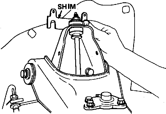 Camber & caster angle is adjusted by varying the thickness of the adjusting shimFig. 2.