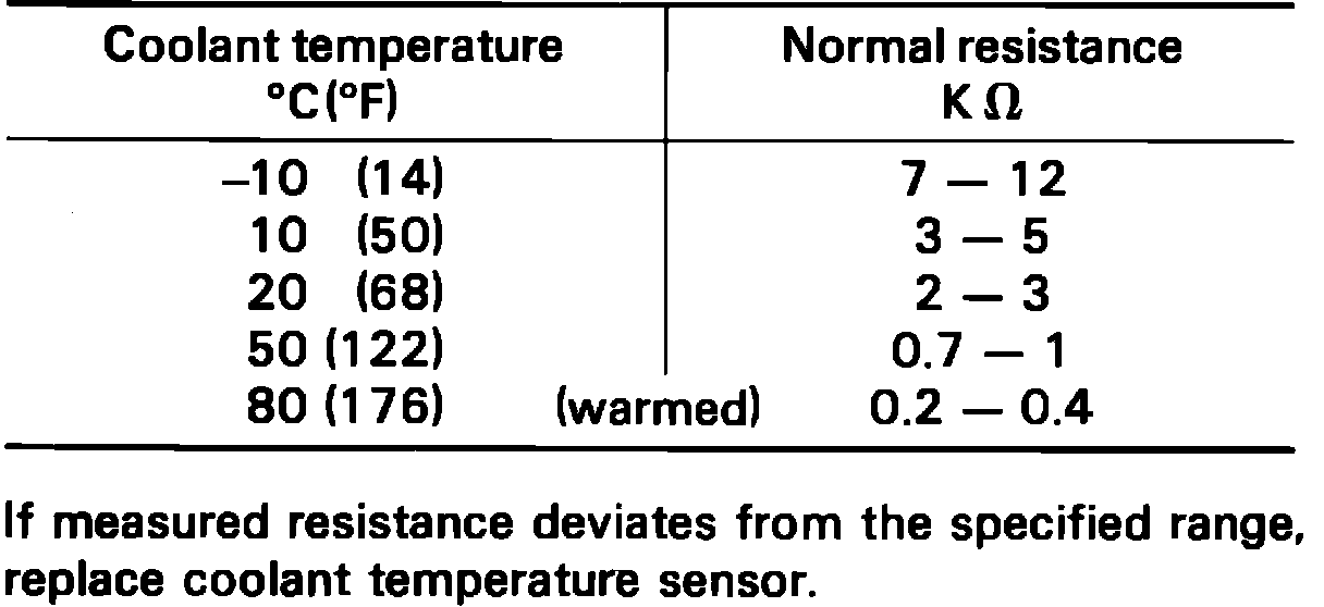 1. Disconnect sensor harness at connector and measure the resistance across the sensor terminals, Fig. 219.