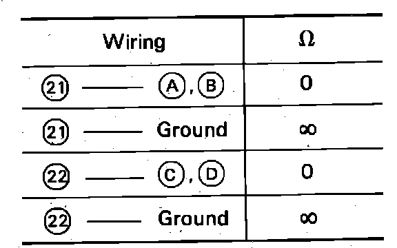Fig. 71 Fuel injector circuit resistance value chart.:
