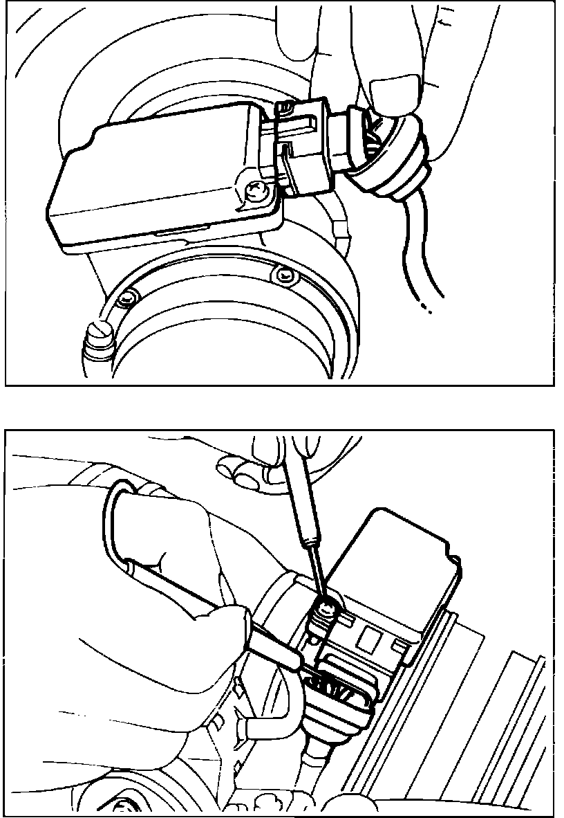 1. Partly raise the sealing gasket on the air flow sensor side of the harness connector, Fig. 208.