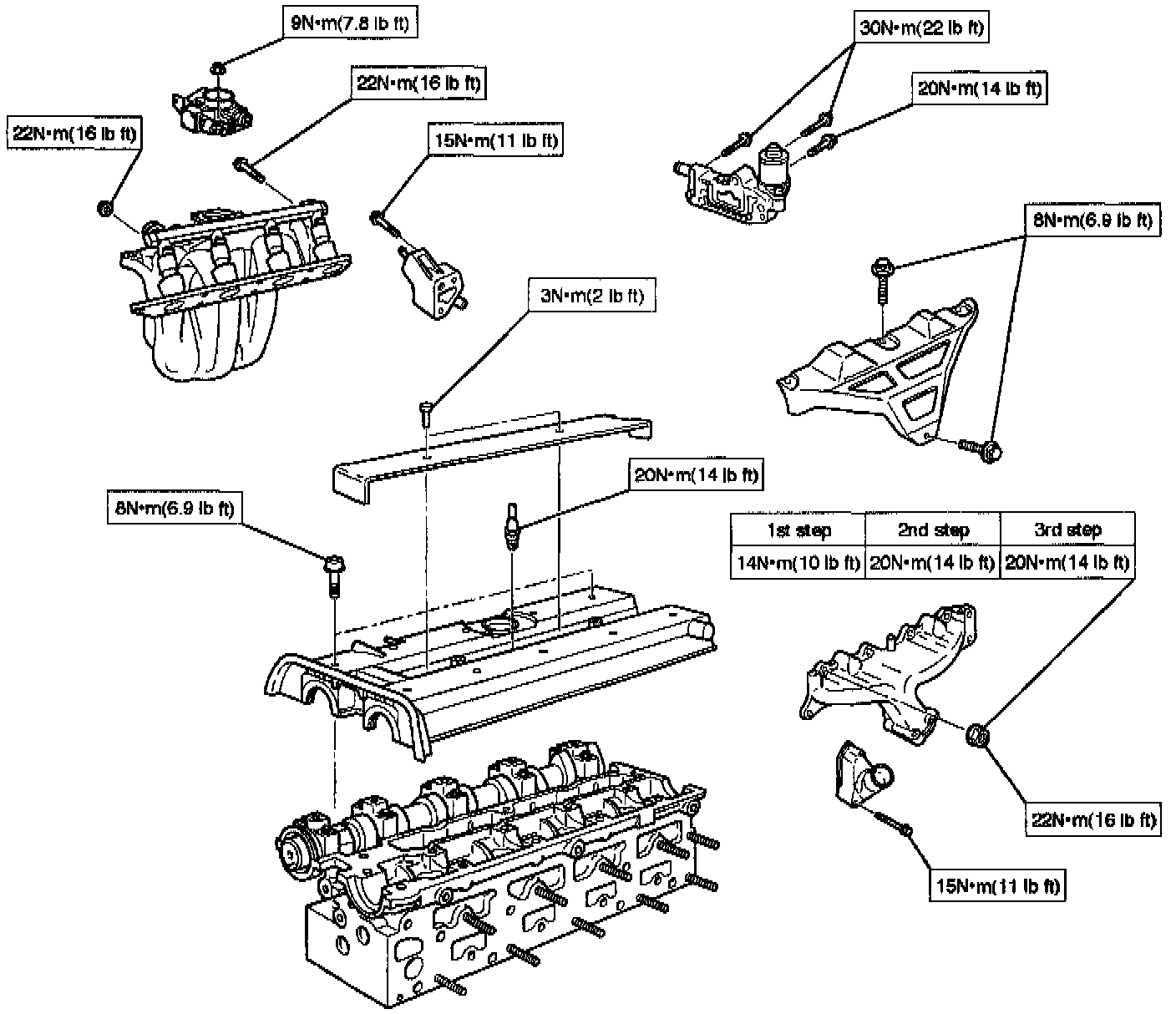 Spark Plug, Throttle Body, EGR Valve Adaptor Assembly, Bypass Housing Assembly, Throttle Assembly, Inlet Manifold Assembly, Exhaust Manifold Assembly, Heat Shield, Ignition Cable Cover: