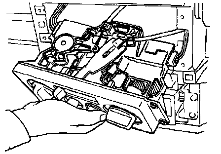 9. Pull the control lever assembly out and disconnect the fan switch and air conditioning switch connectors.