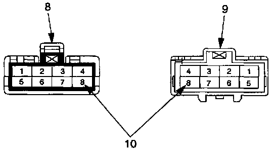 Female side connector (8) terminal numbers are in sequence from upper left to lower right.