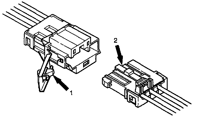 Double lock type yellow color connectors are used for supplemental restraint system-air bag circuit. When removing the cable harness, disconnect the connector by unlocking at two places, outside (1) and inside (2). In such a case, do not pull the cables. Otherwise, cable disconnection may occur.