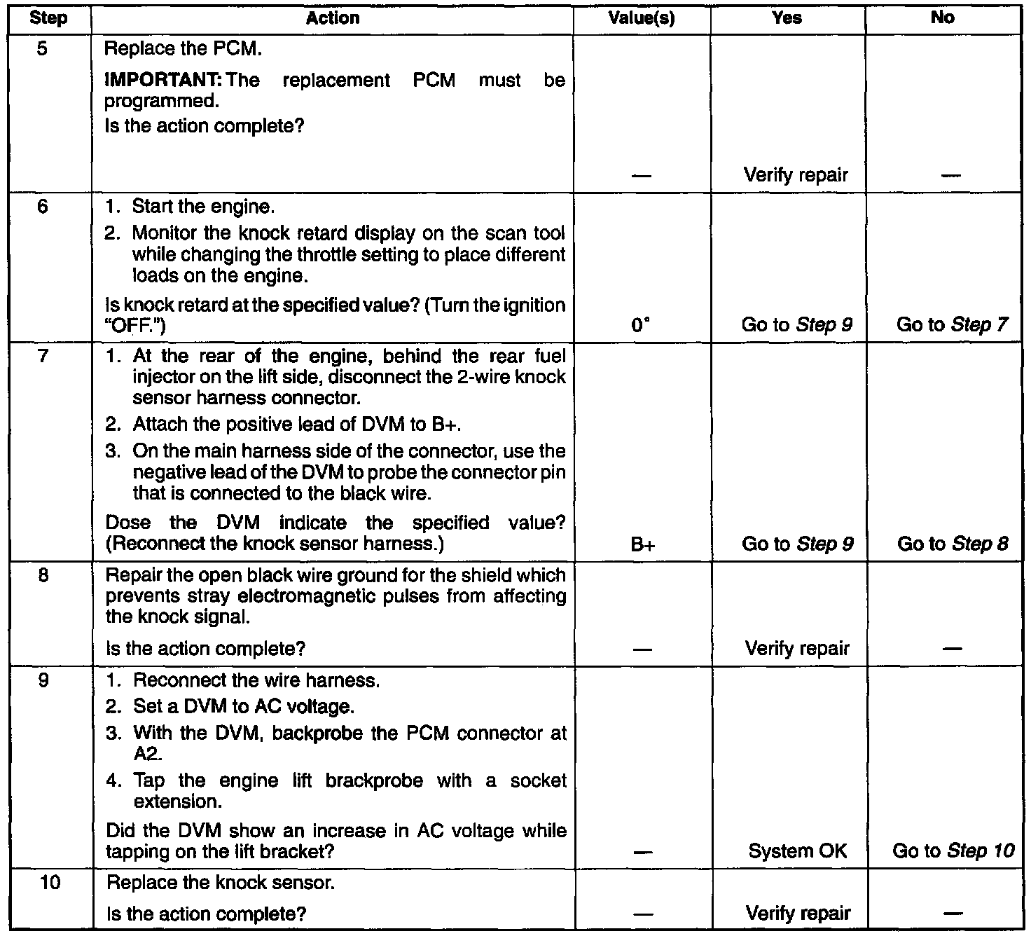 9. The change in signal speed depends on how hard the tapping is done. Normally there is about 1.5 to 10 mV at PCM pin A2 with the engine off. Loud tapping should be able to make the reading jump to 20-25 mV AC.