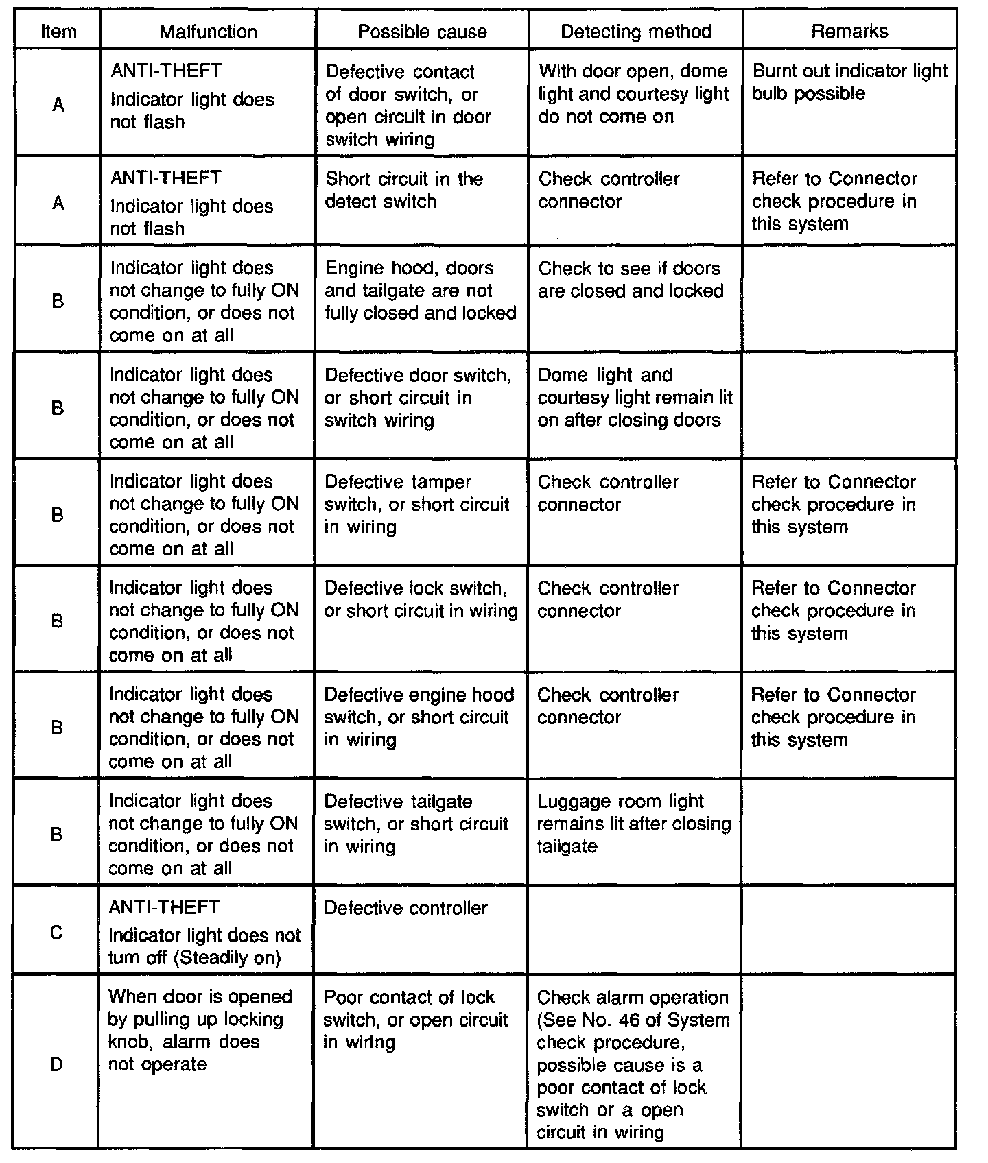 ^ Replace the anti-theft controller with one reserved for test. If a trouble recurs even after replacing the controller, find out the cause of the trouble by referring to System check procedure and the following list.