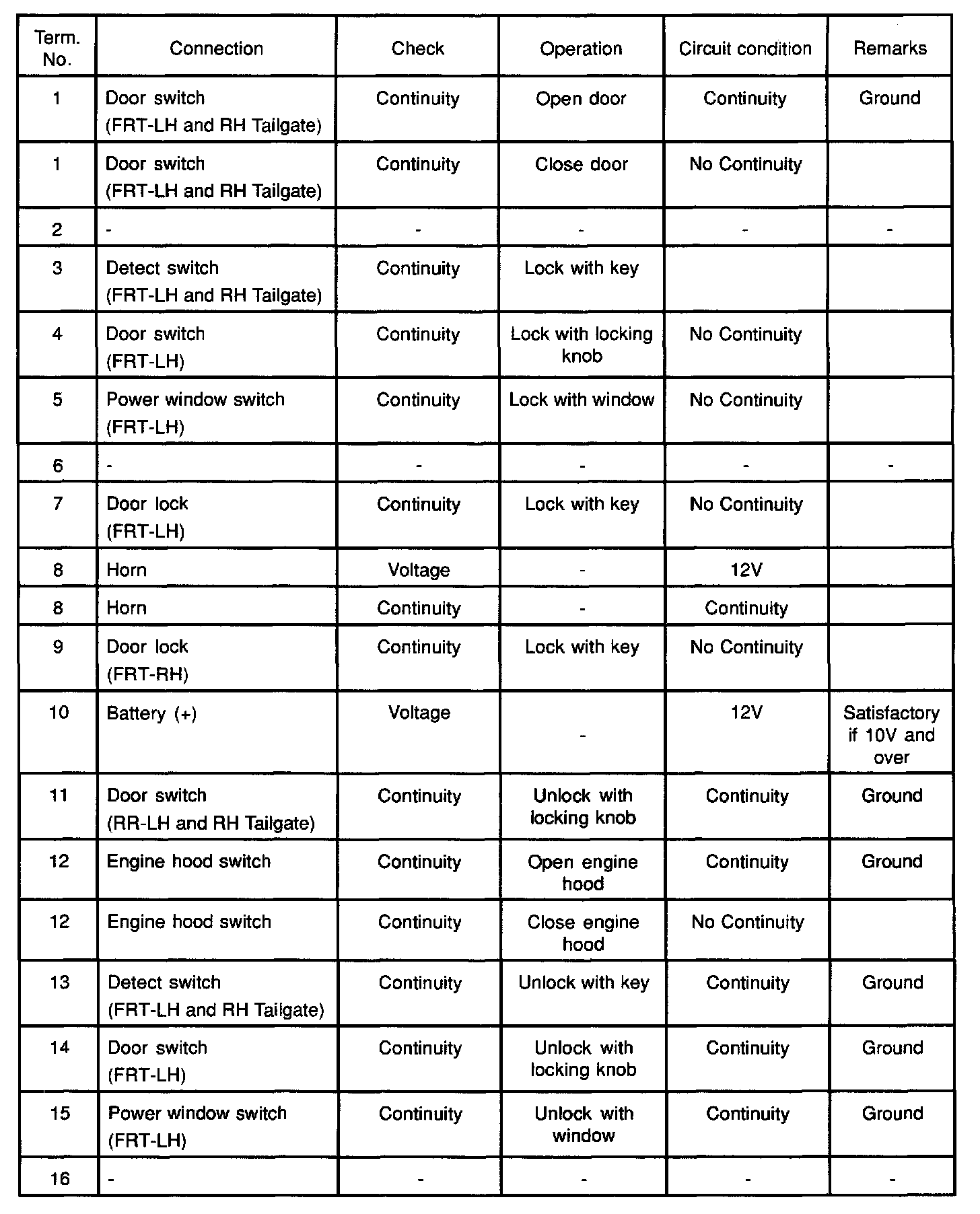 NOTE: When the connector of the anti-theft controller is disconnected, the starter is inoperative. In the checking of short wheel base model, step Nos 16 through 21 and step Nos. 31 through 36 are omitted.