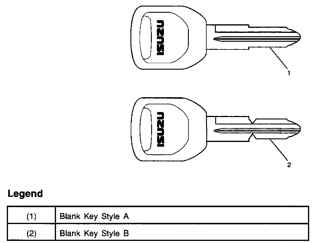 The keys come in styles A or B depending on the key code cutting combination. When the first position in the combination is a 1, 2 or 3, Style A is used. When the first position is a 4, Style B (factory pre-cut key) is used.