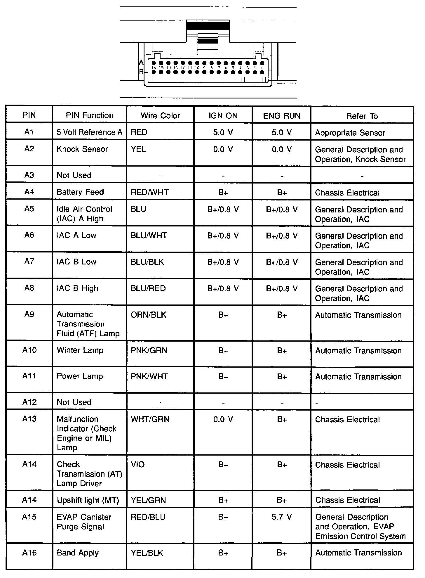 PCM Pinout Table, 32-Way Red Connector - Row A: