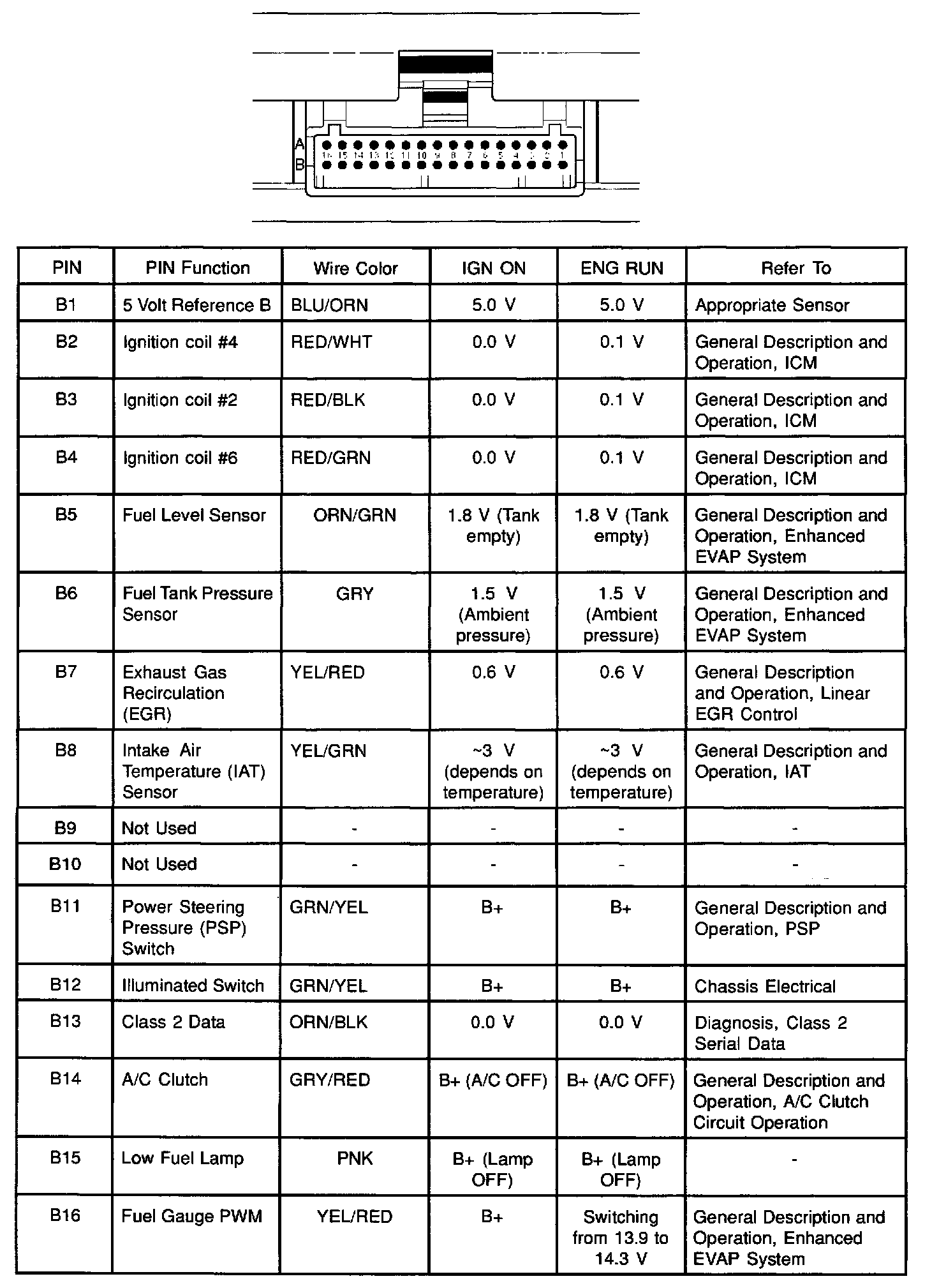 PCM Pinout Table, 32-Way Red Connector - Row B: