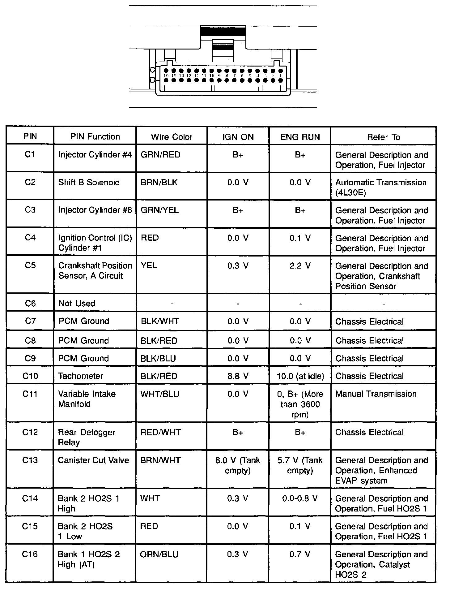PCM Pinout Table, 32-Way White Connector - Row C: