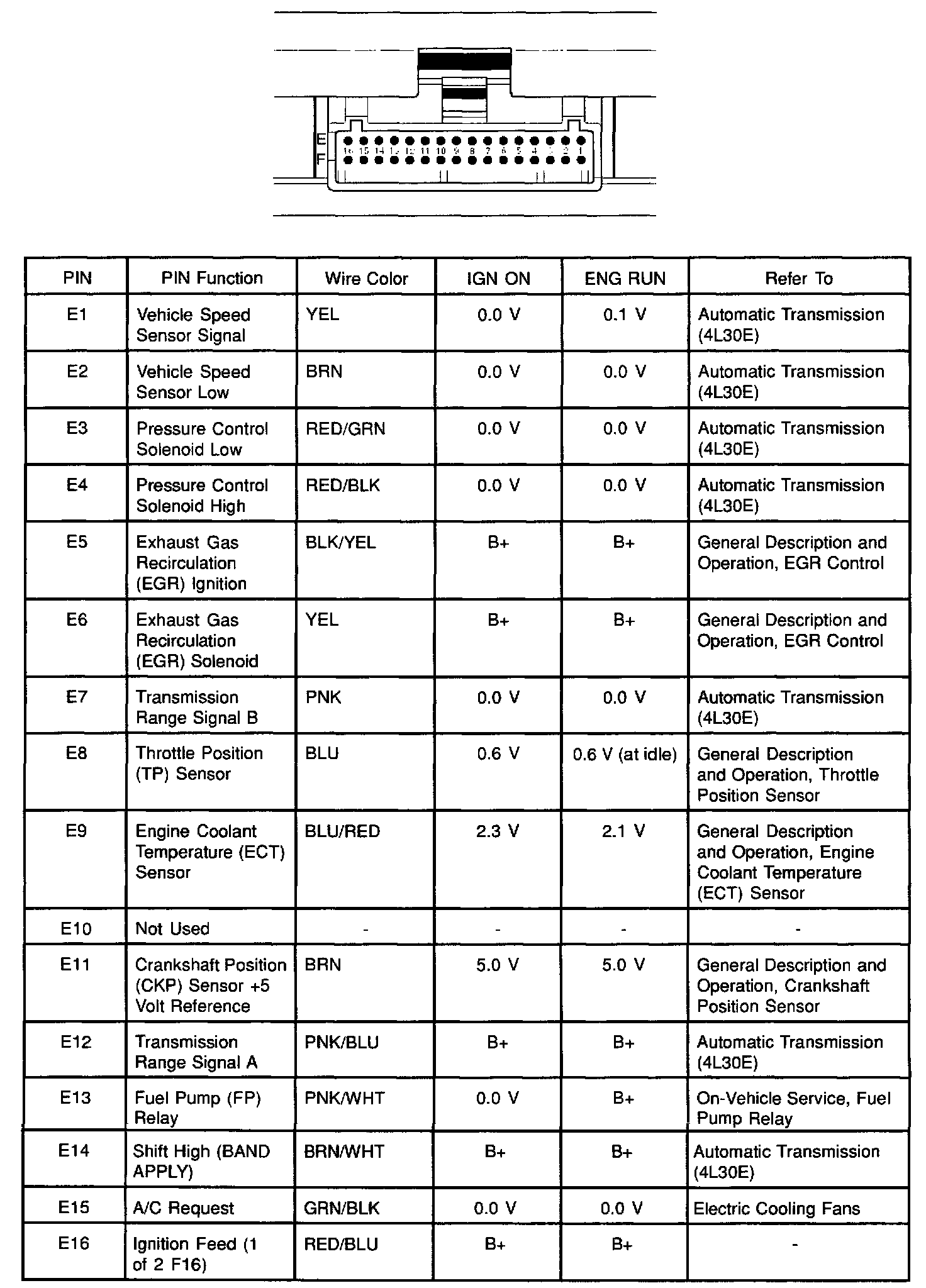 PCM Pinout Table, 32-Way Blue Connector - Row E: