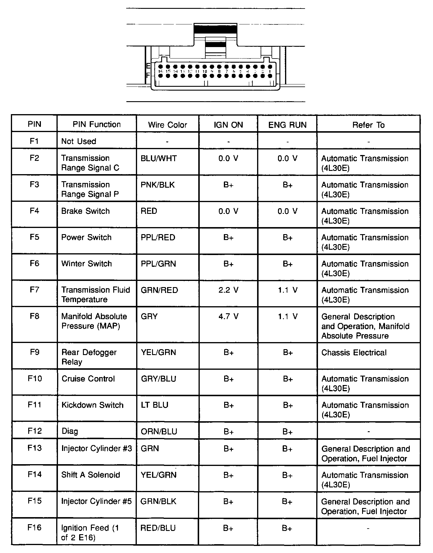 PCM Pinout Table, 32-Way Blue Connector - Row F: