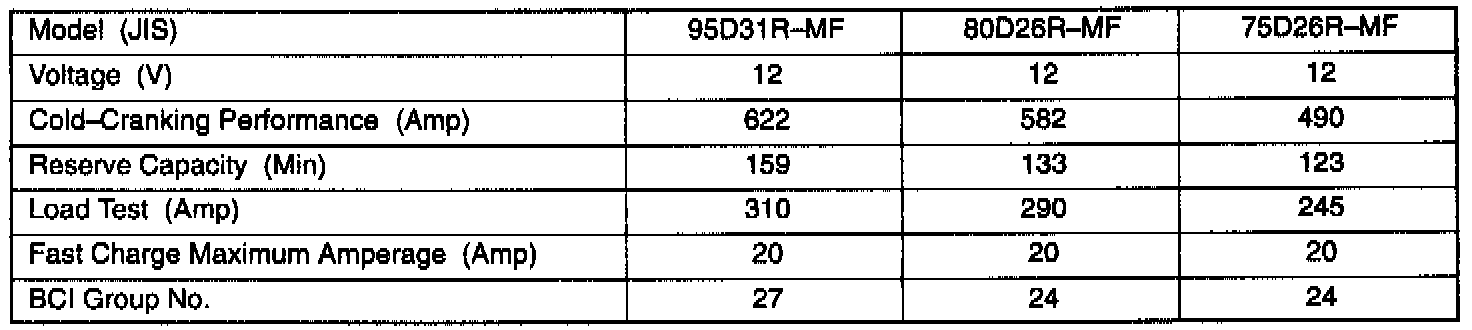 Starting and Charging: Specifications