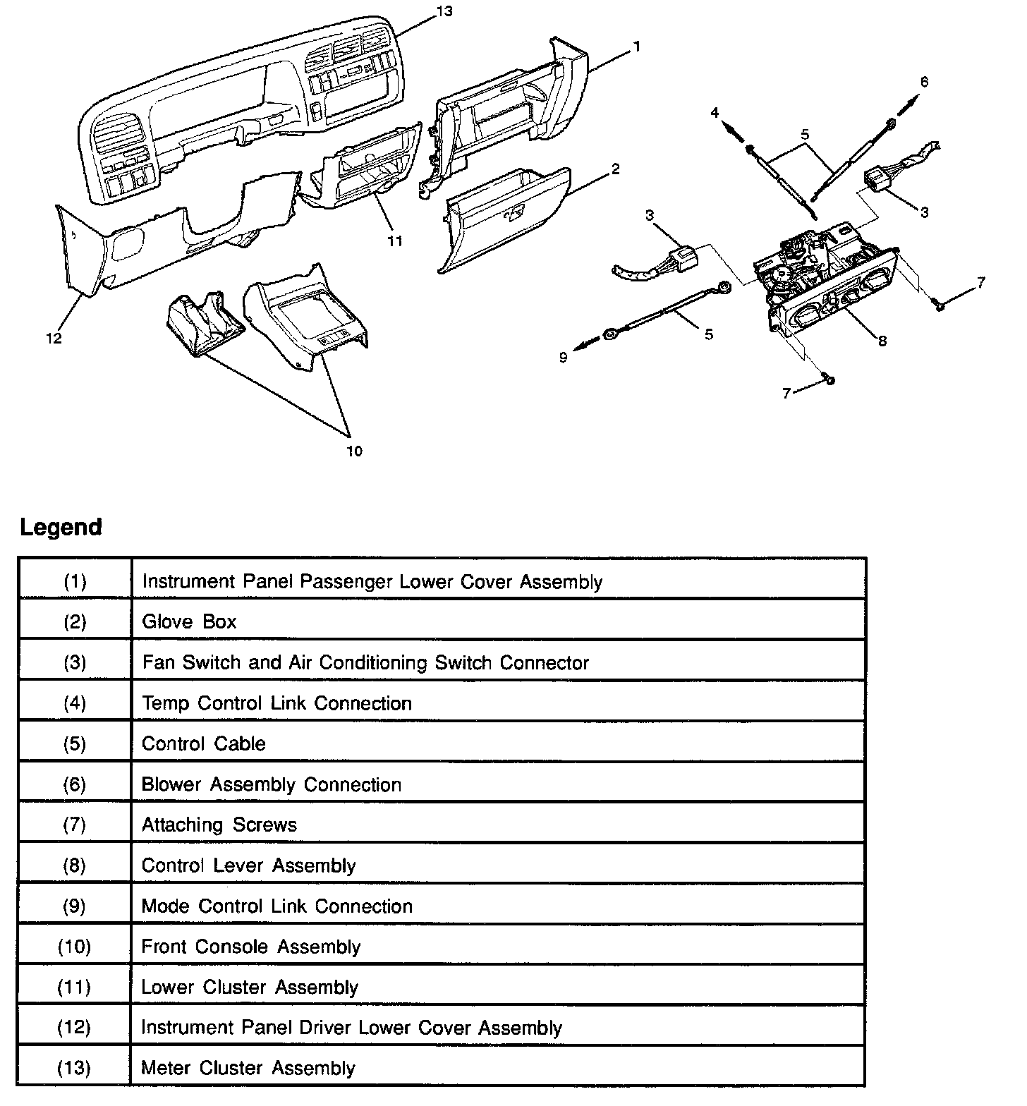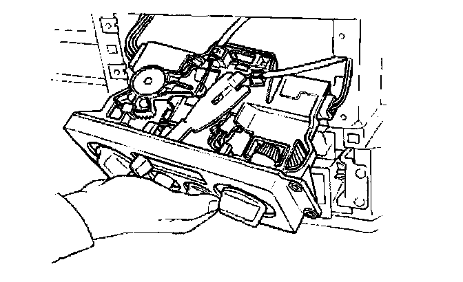 9. Pull the control lever assembly out and disconnect the tan switch and air conditioning switch connectors.