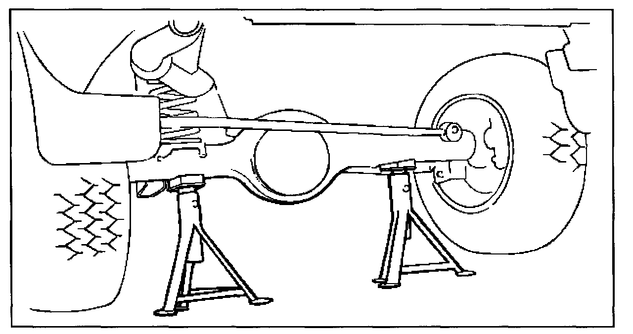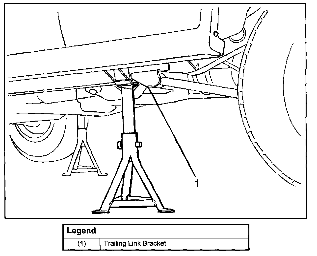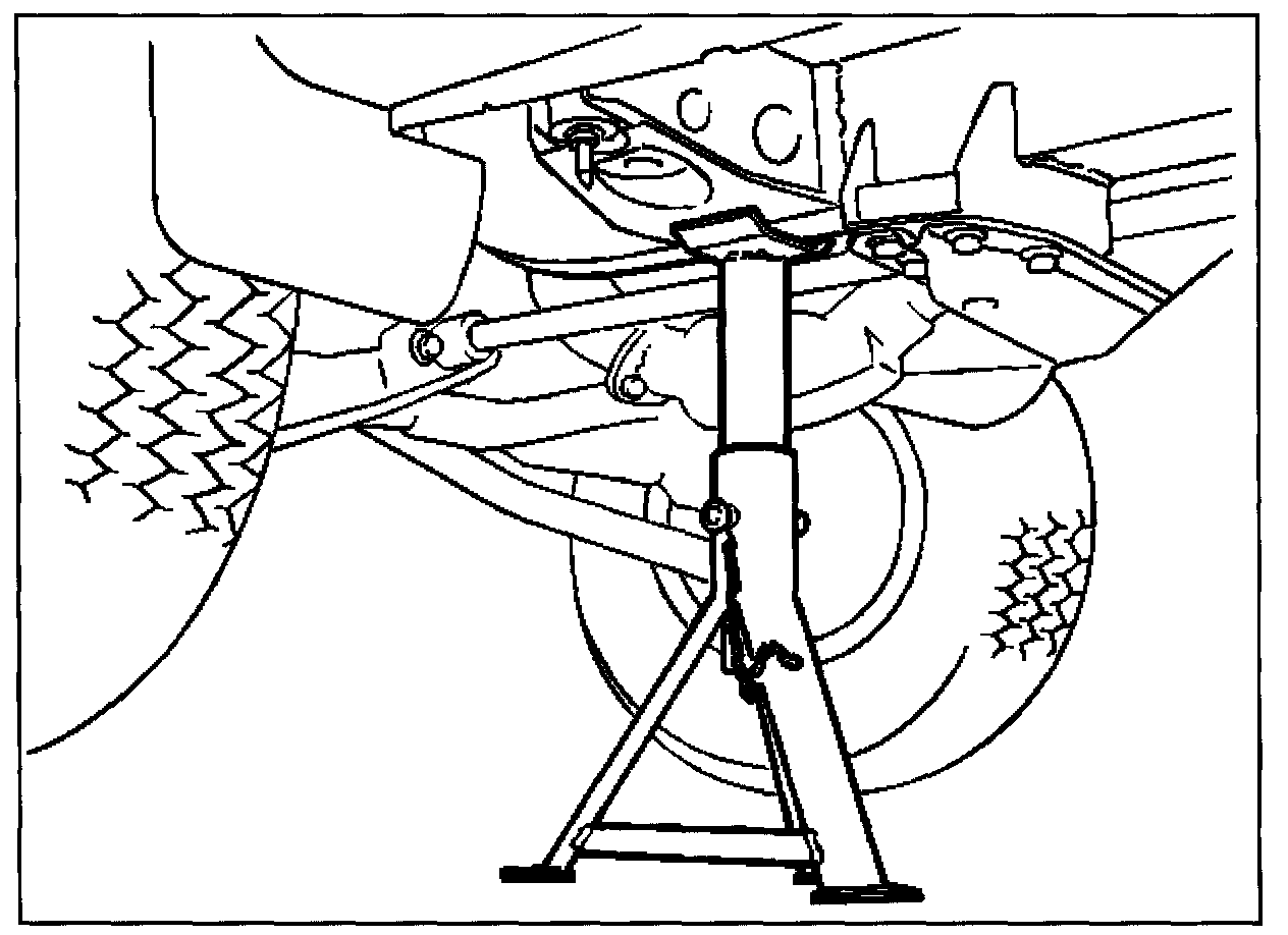 Position the chassis stands at the bottom of the frame sidemember, just in front of the trailing link bracket.