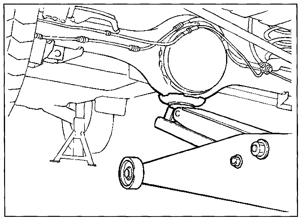 Position the chassis stands at the bottom of the rear axle case.
