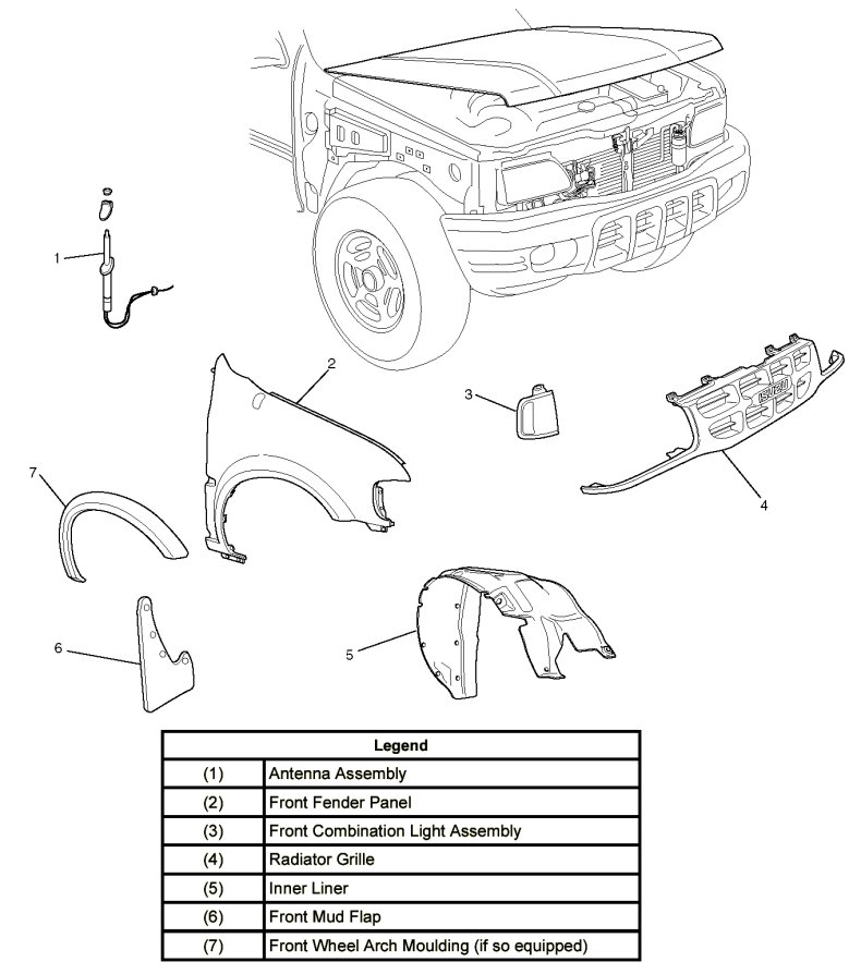 Home >> Isuzu >> 2000 >> Rodeo LS 2WD V6-3.2L >> Repair and Diagnosis >> Body and Frame >> Fender >> Front Fender >> Service and Repair