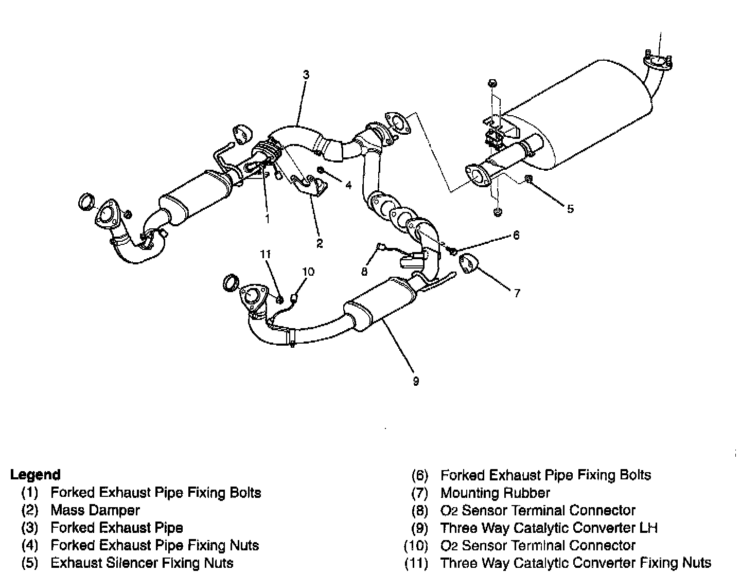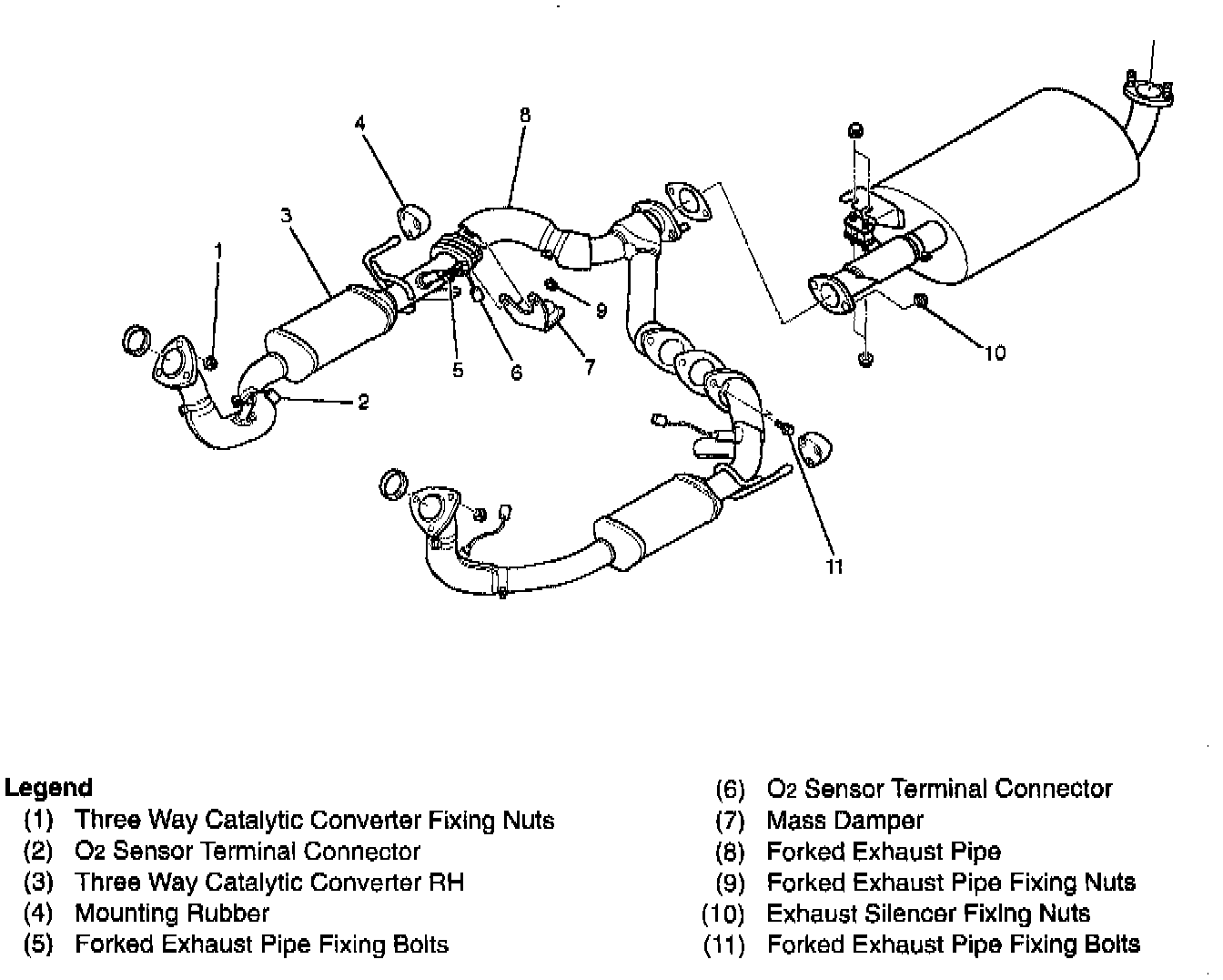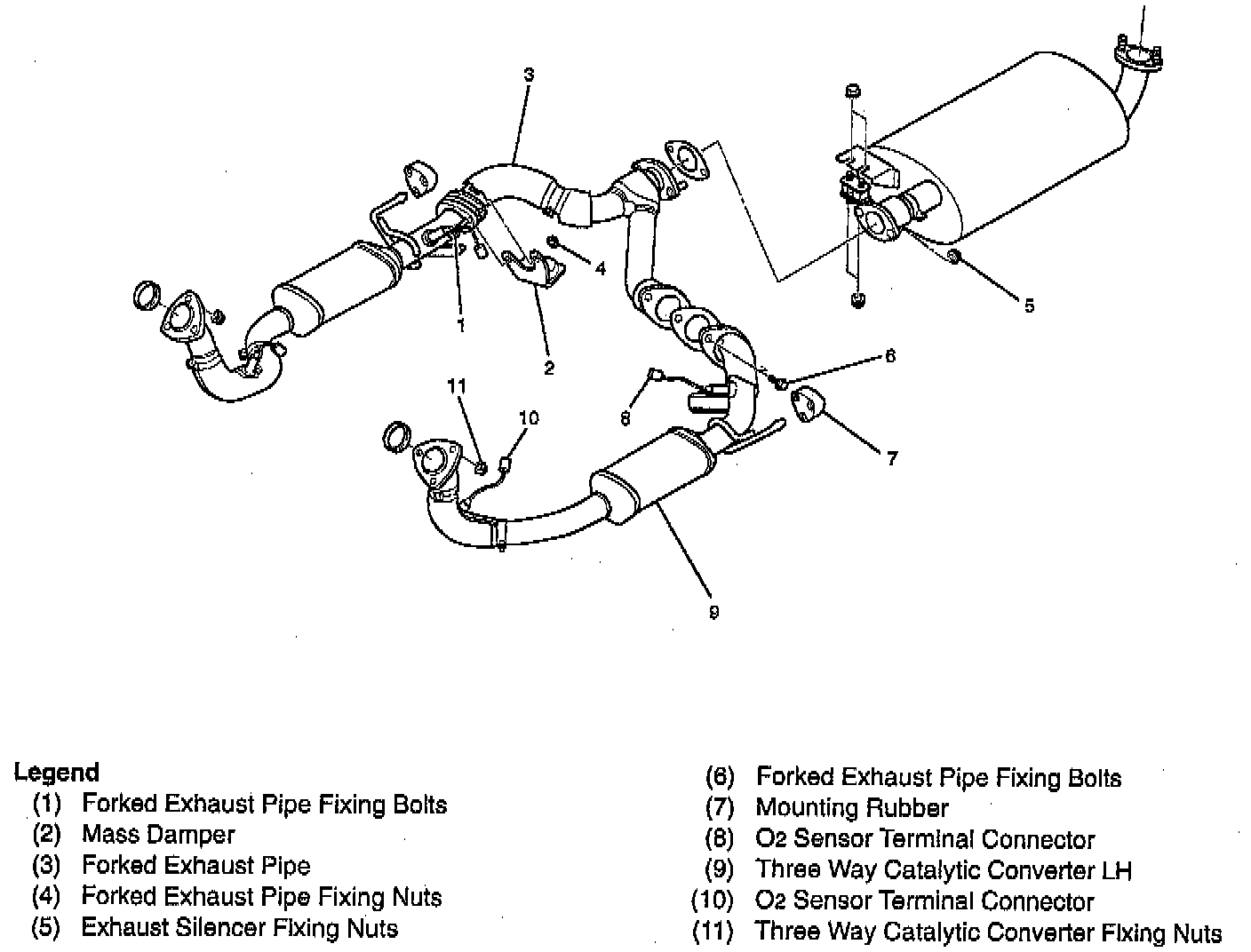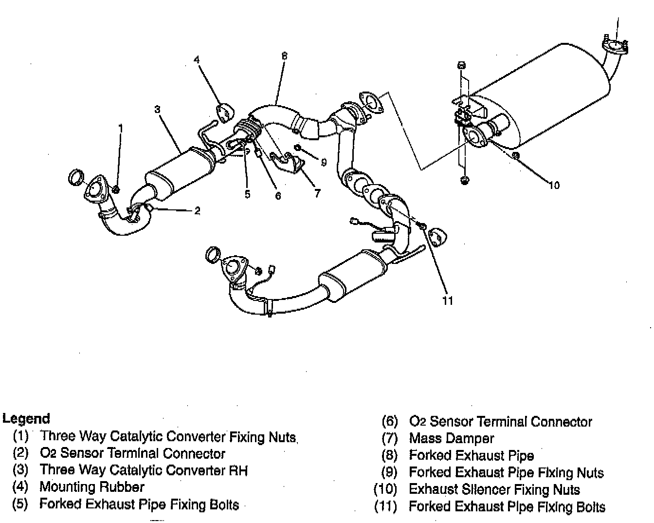 TWC LH and Forked Exhaust Pipe and Associated Parts: