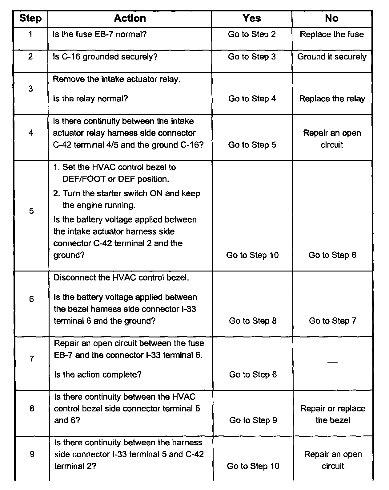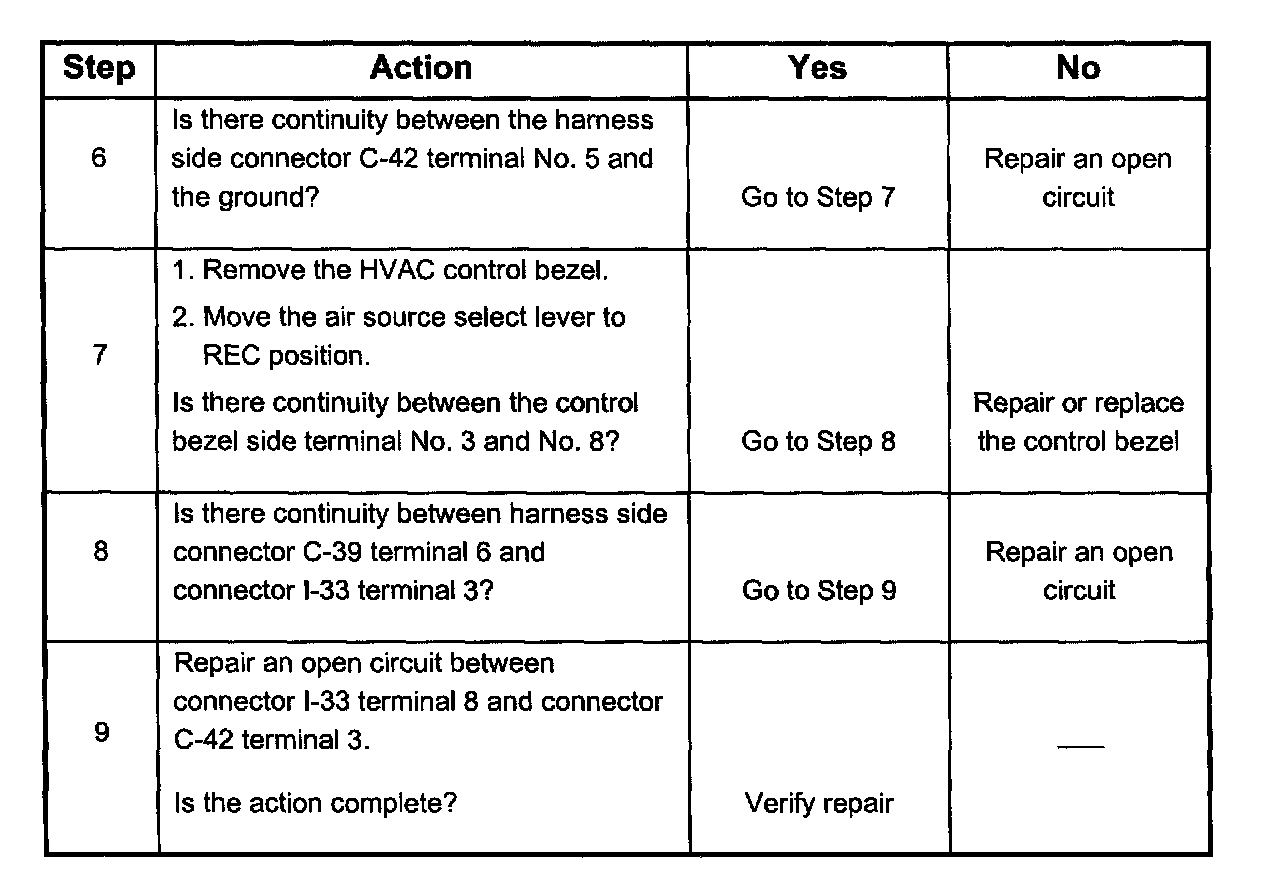 Chart A - FRESH Mode Inoperative