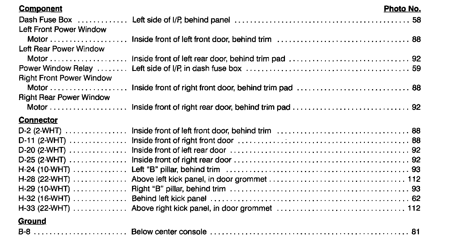 Power Windows Index: