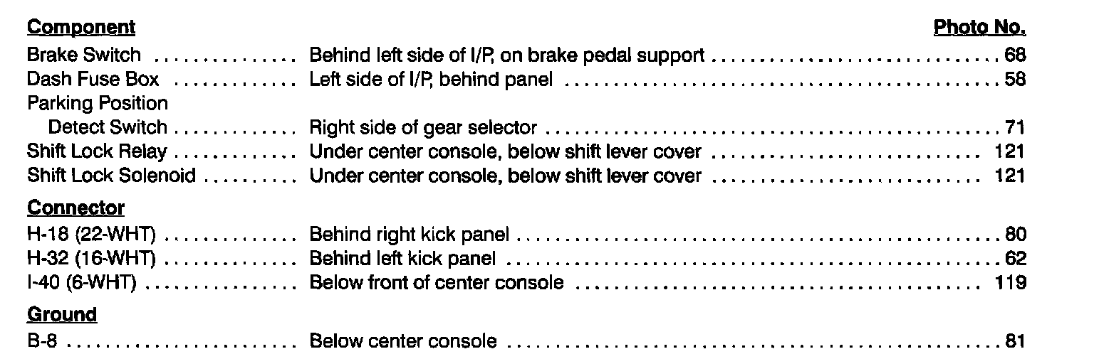 Shift Interlock System Index: