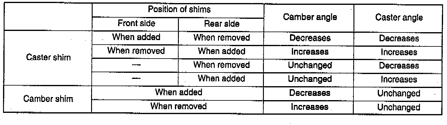 NOTE: Difference of the caster shim front/rear thickness should be 3.6 mm (0.142 inch) or less. Overall thickness of caster shim and camber shim should be 10.3 mm (0.425 inch) or less.