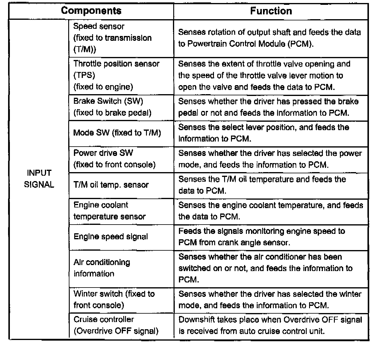 Home >> Isuzu >> 2000 >> Rodeo LS 2WD V6-3.2L >> Repair and Diagnosis >> Powertrain Management >> Transmission Control Systems >> Description and Operation >> General description