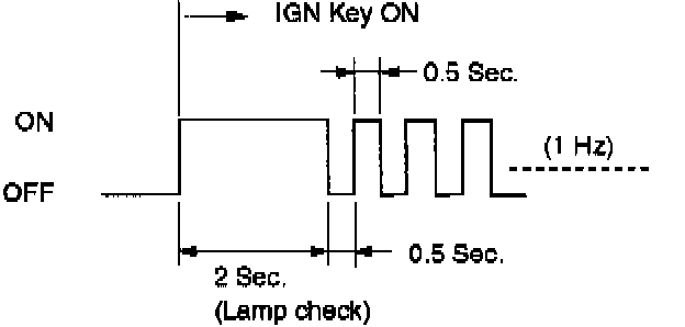 2. Indicator it is flashing and the flash is 0.5 seconds ON and 0.5 seconds OFF always when ignition is on (engine cranked or not). This means that there is a malfunction. GO TO DIAGNOSTIC CHECK.