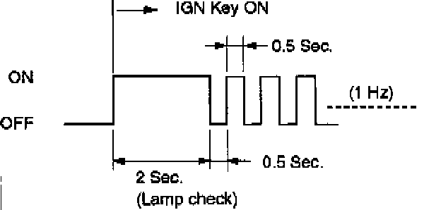 2. Indicator it is flashing and the flash is 0.5 seconds ON and 0.5 seconds OFF always when ignition is on (engine cranked or not). This means that there is a malfunction. GO TO DIAGNOSTIC CHECK.