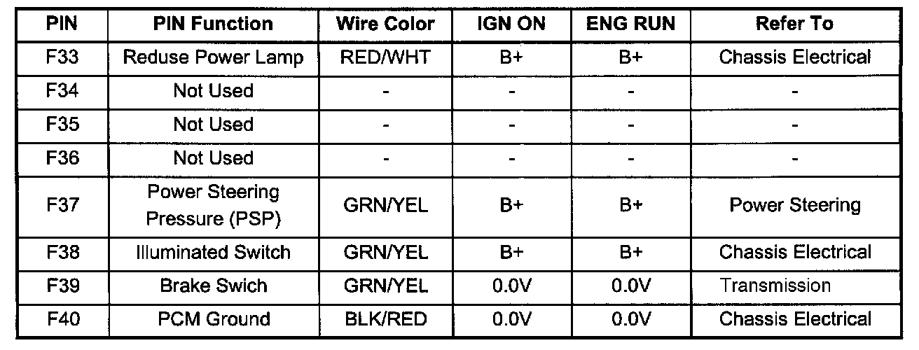 PCM Pinout Table, 80 - Way Blue Connector - Row "F20 - 40" (F33 To F40):