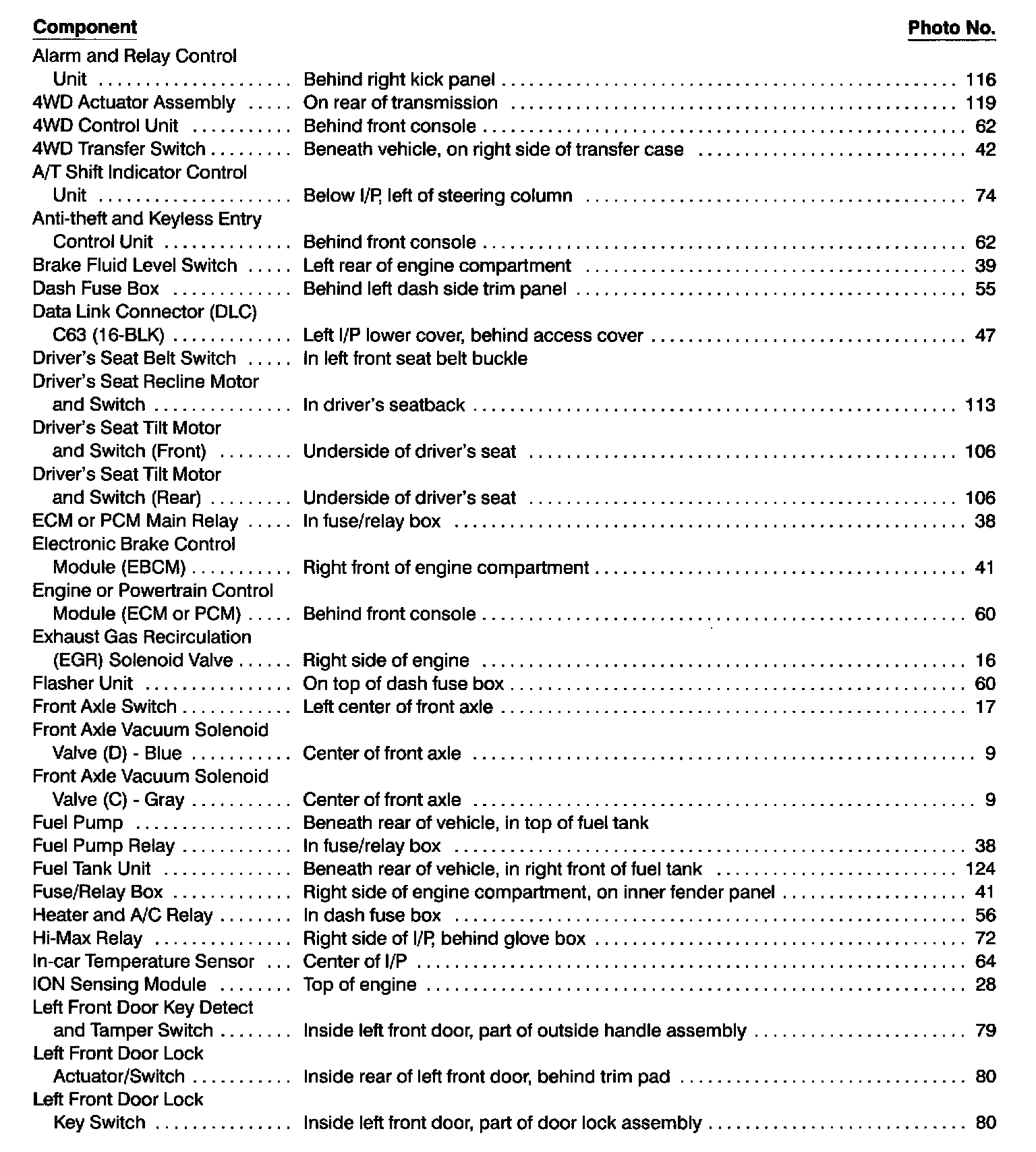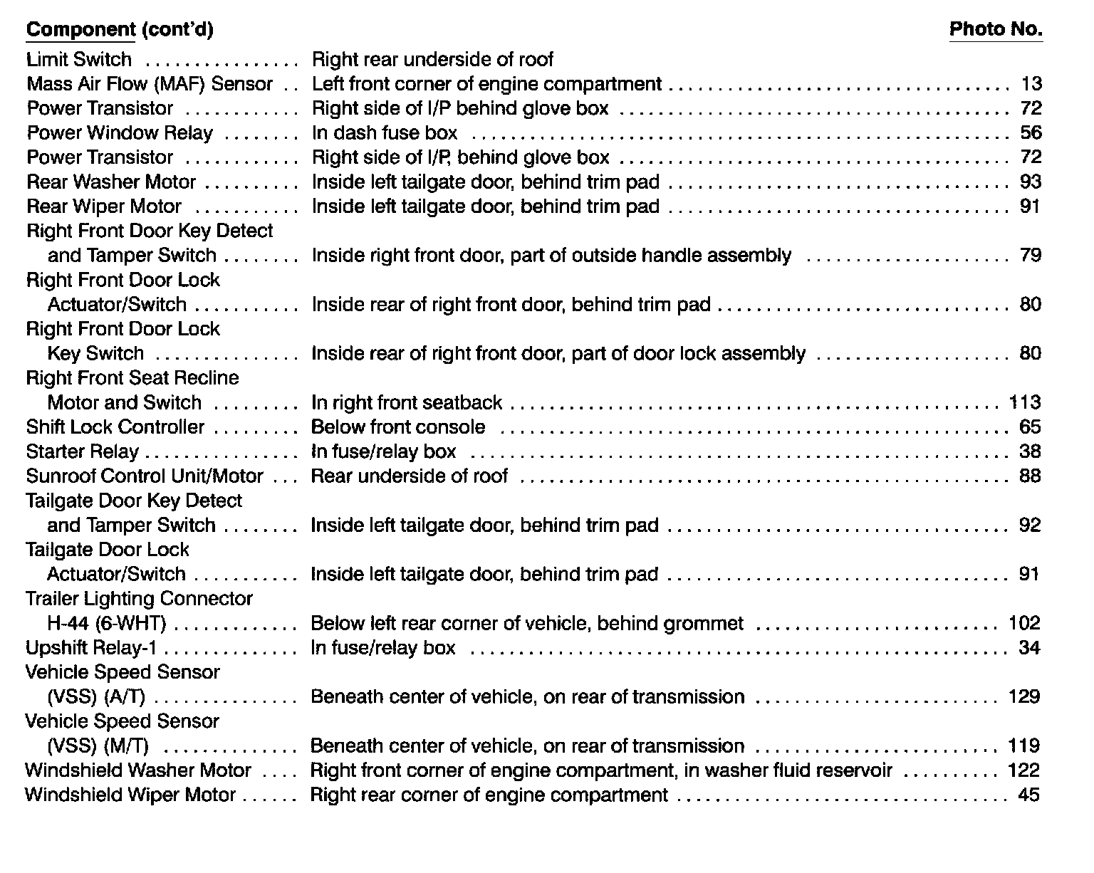 Component List