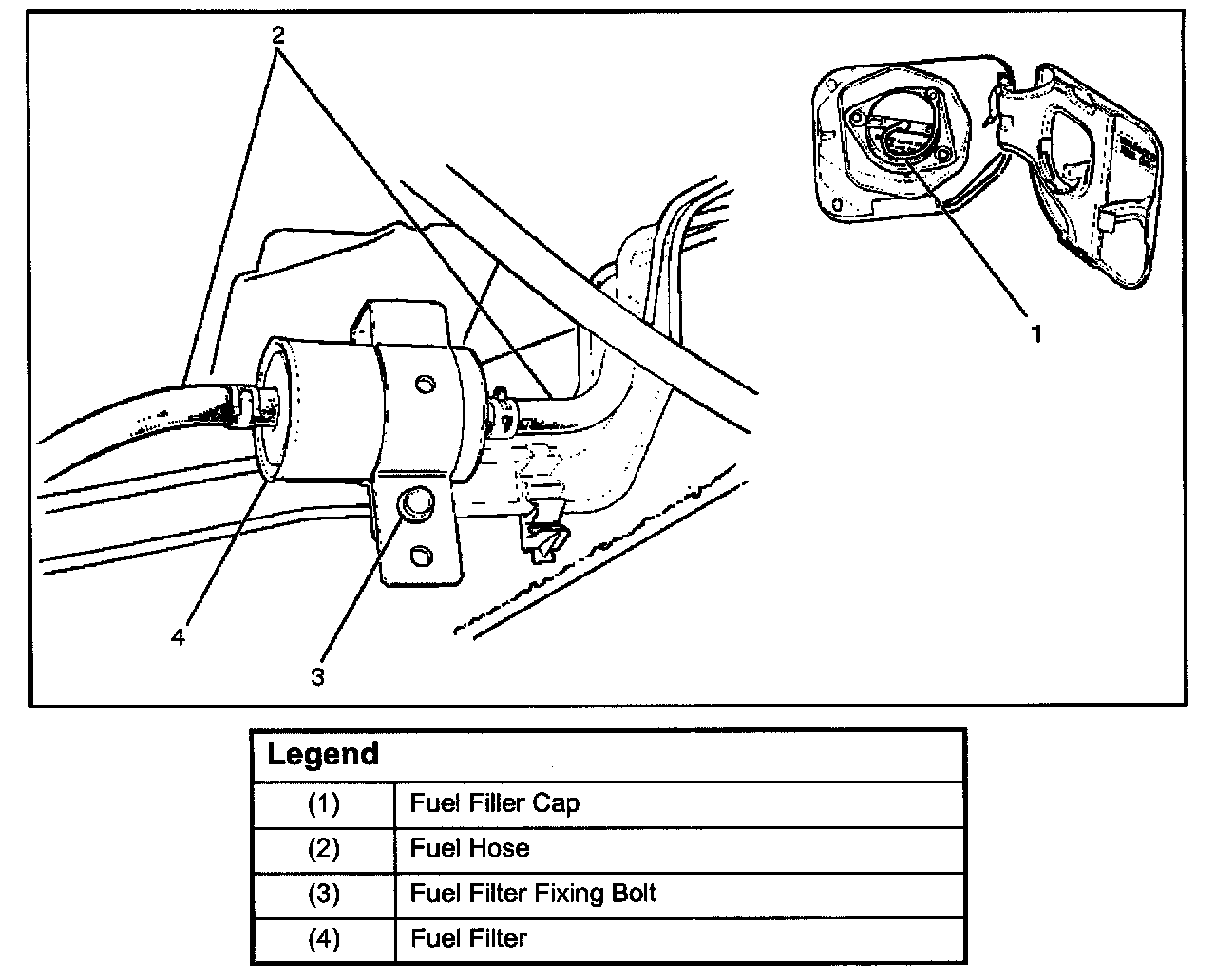 2. Remove Fuel filler cap(1).
