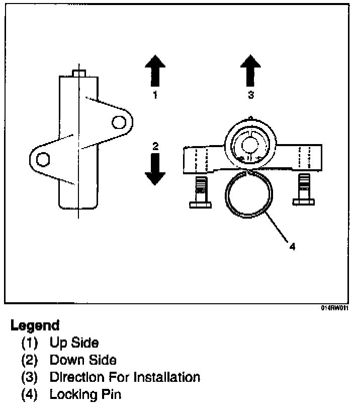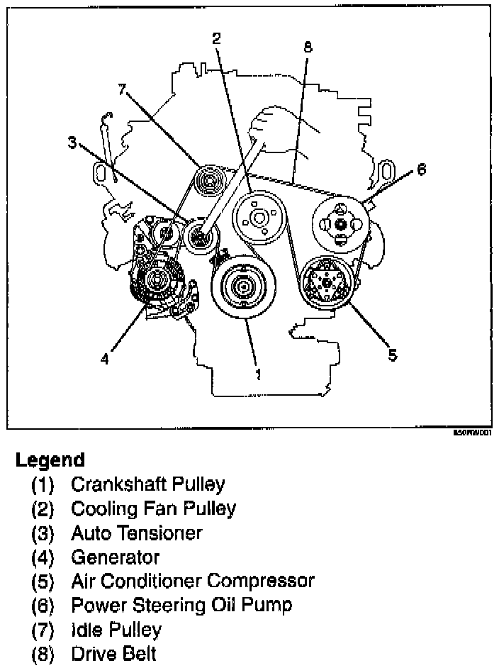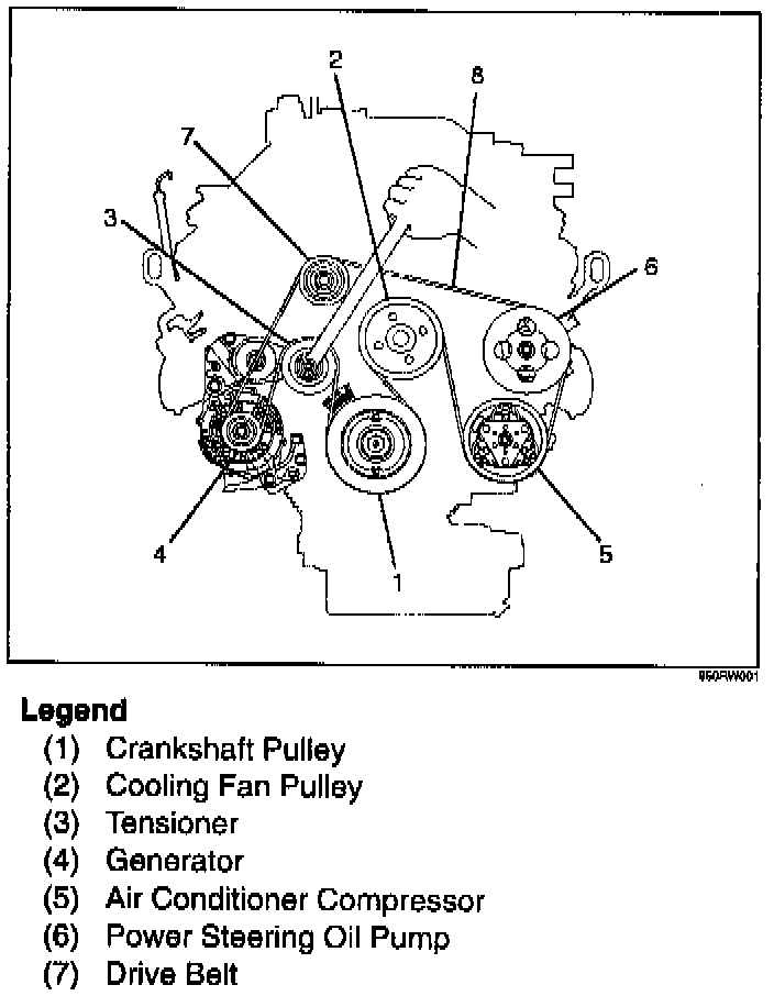NOTE: For correct belt installation, the letter on the belt must be able to be read as viewed from the front of the vehicle.