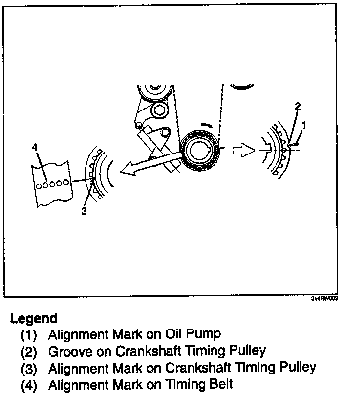 Incorrect removal or installation of the timing belt can result in damage to internal engine components.