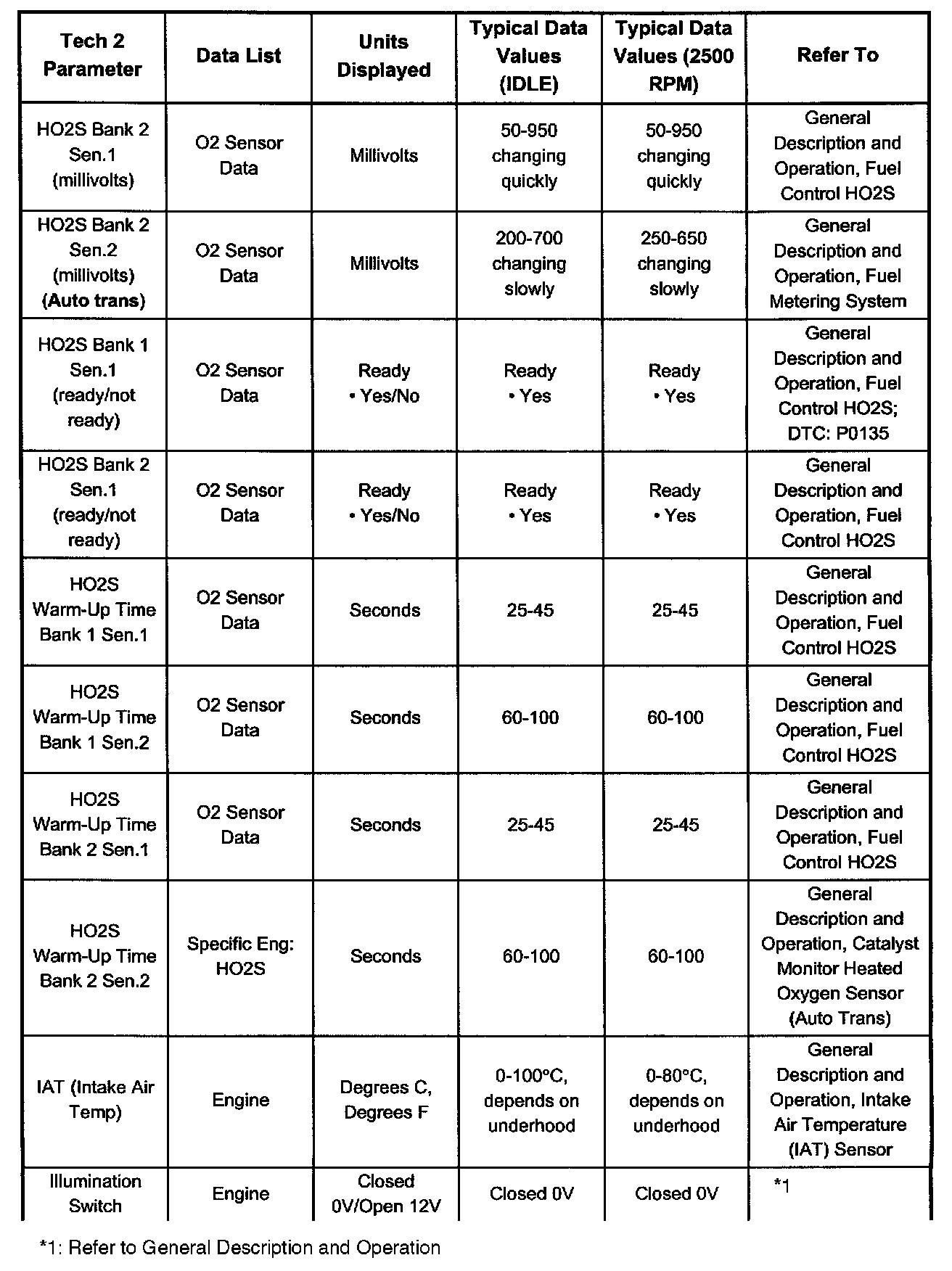 Only the parameters listed are referred for use in diagnosis. For further information on using the Tech 2 to diagnose the PCM and related sensors, refer to the applicable reference listed below. If all values are within the typical range described below, refer to Symptom Diagnosis for diagnosis.