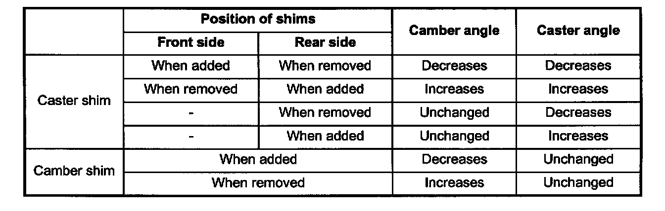 Note: Overall thickness of caster shim and camber shim should be 10.8 mm (0.425 inch) or less.