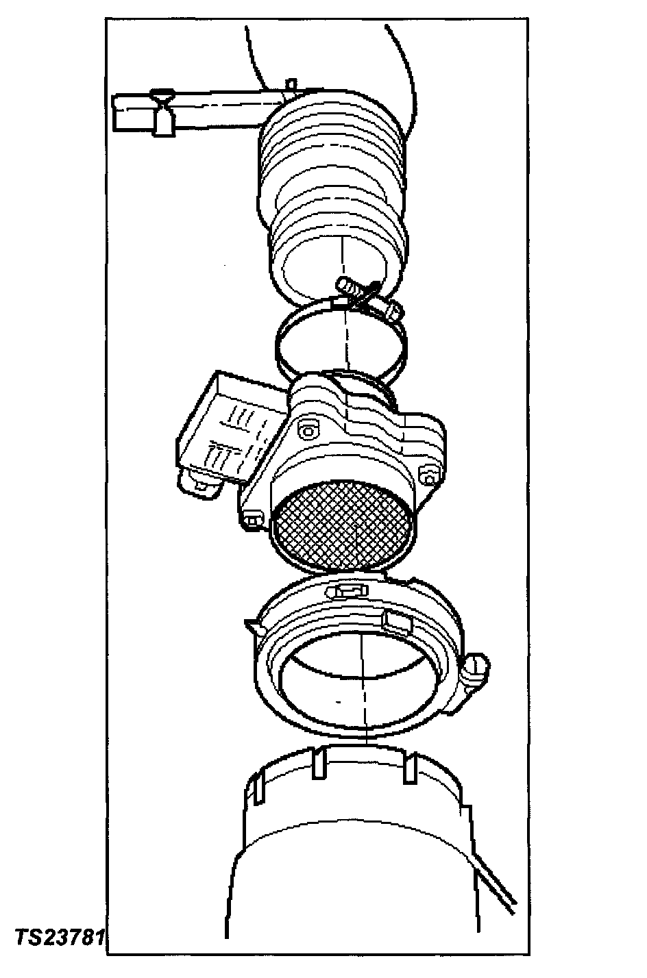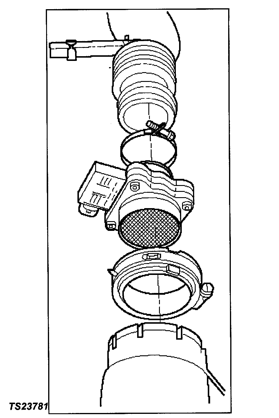 3. Loosen the clamps which secure the intake air duct and the air cleaner to the MAF sensor.