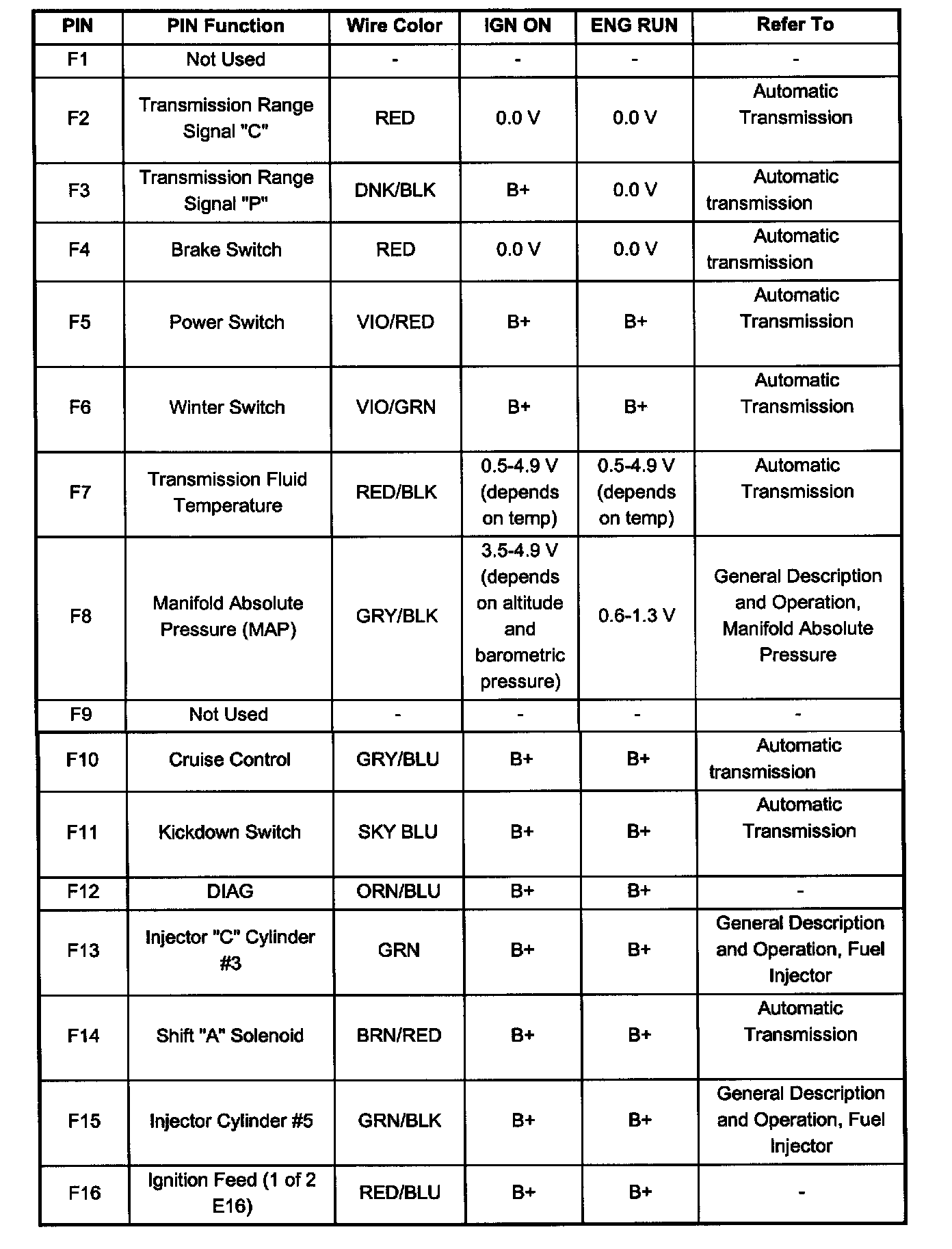 Pin F1 - F16: