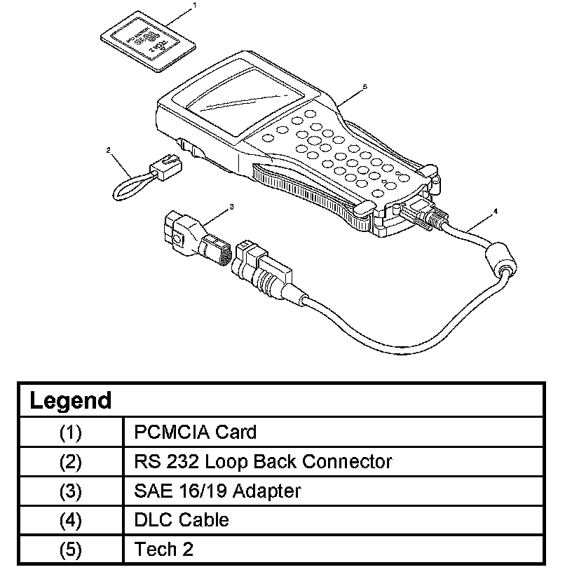 1. The Isuzu 2001 System PCMCIA card (1) inserts into the Tech 2 (5).