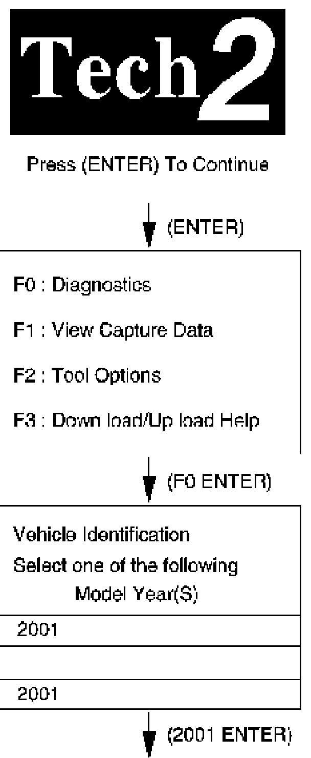 7. Verify the Tech 2 power up display.