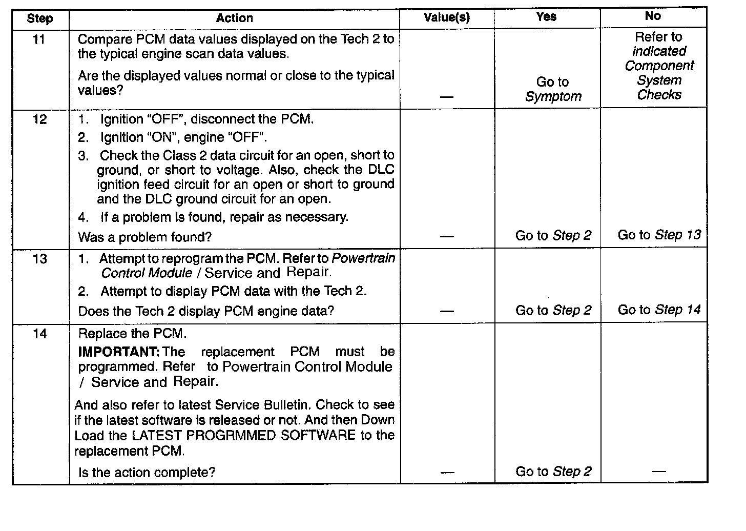 13. A Tech 2 parameter which is not within the typical range may help to isolate the area which is causing the problem.