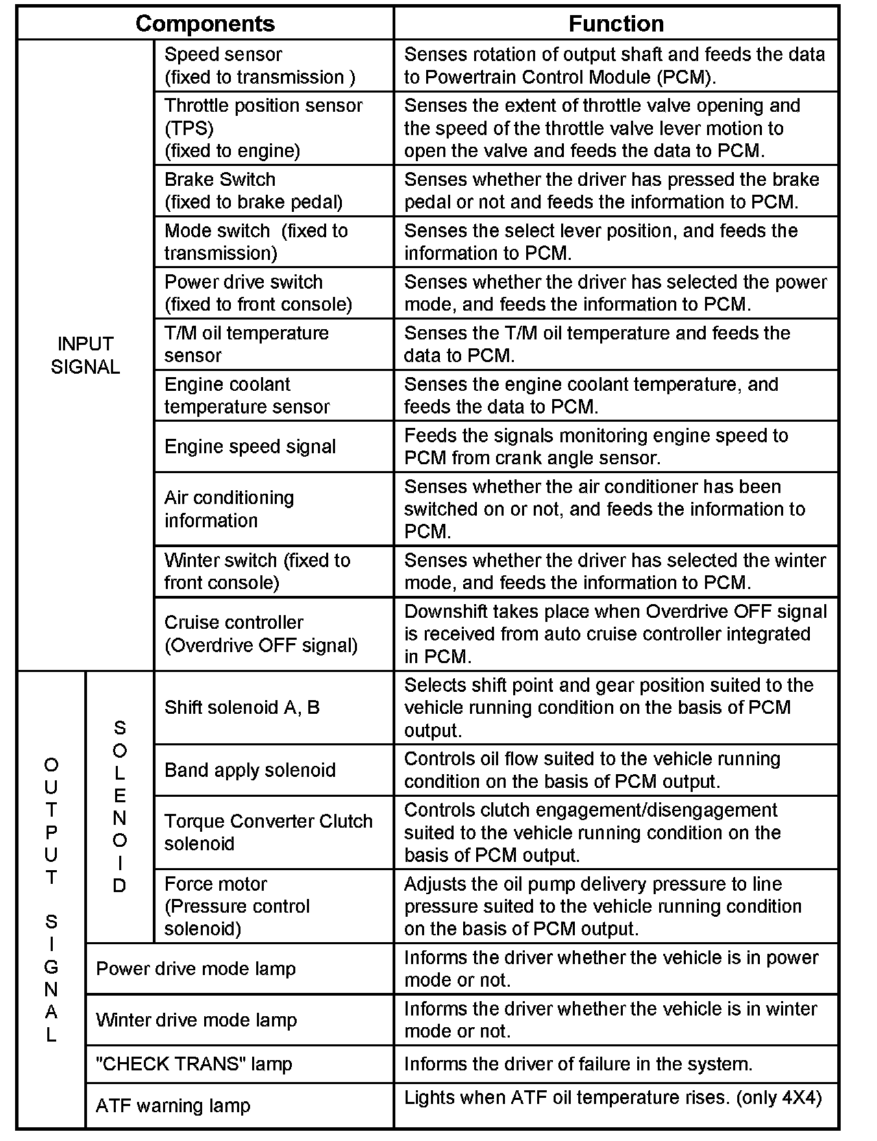 Home >> Isuzu >> 2001 >> Rodeo LS 4WD V6-3.2L >> Repair and Diagnosis >> Powertrain Management >> Transmission Control Systems >> Description and Operation