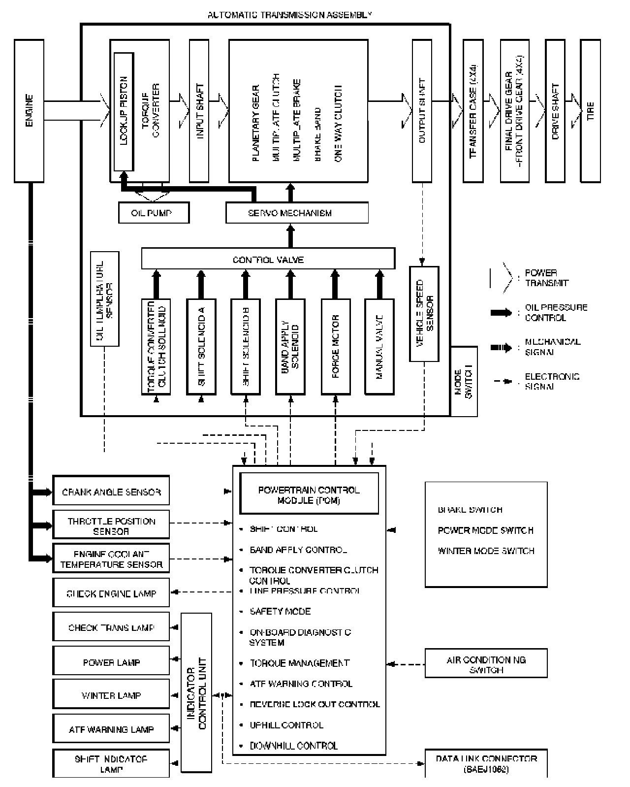- Electronic control maintains the optimum hydraulic pressure for clutch, band brake as well as transmission so that shift feeling is improved.
