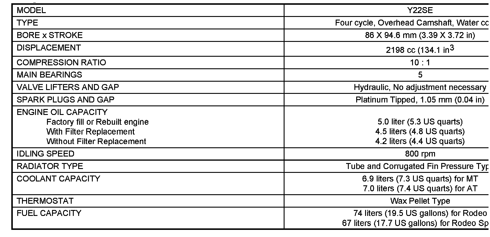 Rodeo S 2WD L4-2.2L