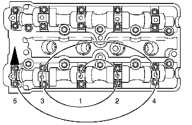 Note: Remove camshaft bearing caps in reverse order of installation.