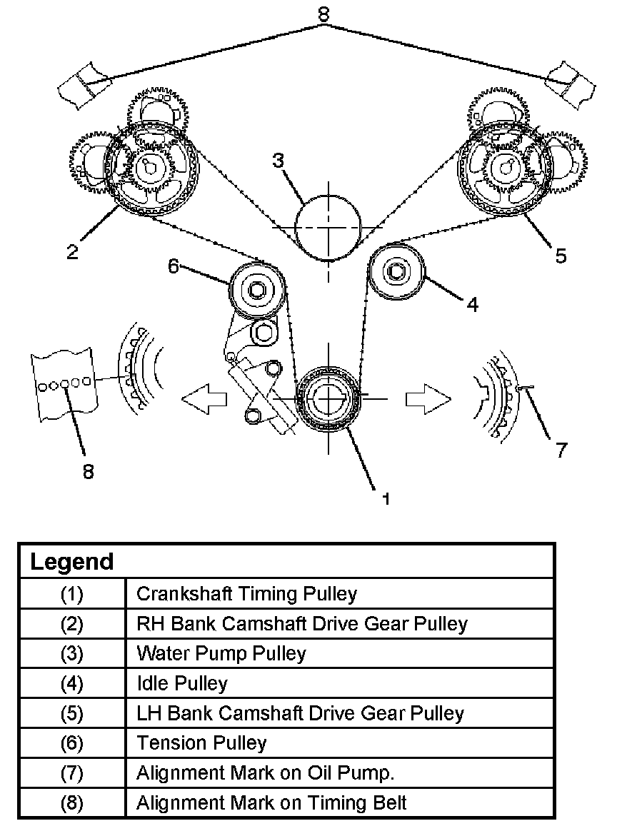 Incorrect removal or installation of the timing belt can result in damage to internal engine components.