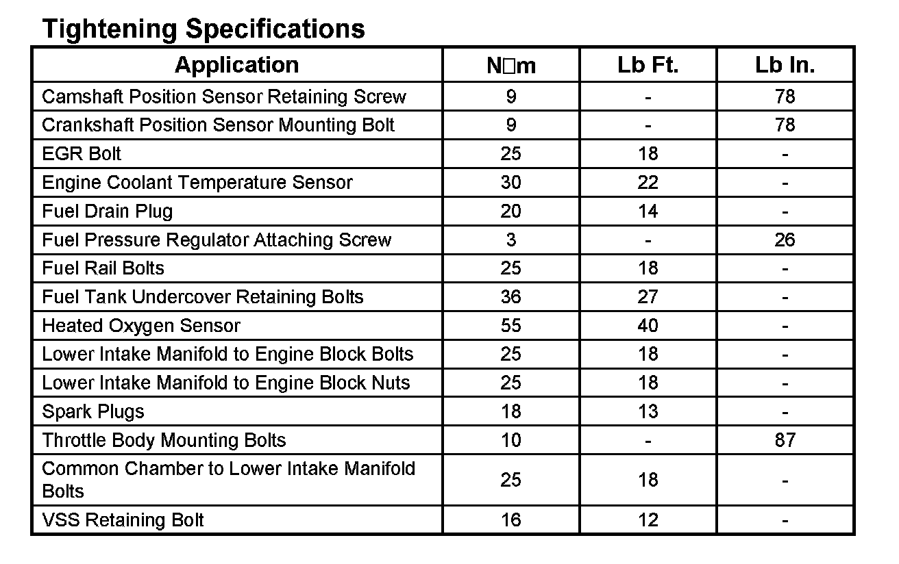Tightening Specifications: