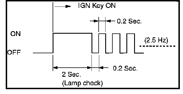 2. Indicator it is flashing and the flash is 0.2 seconds ON and 0.2 seconds OFF always when ignition is on (engine cranked or not). This means that there is a malfunction. GO TO DIAGNOSTIC