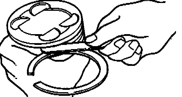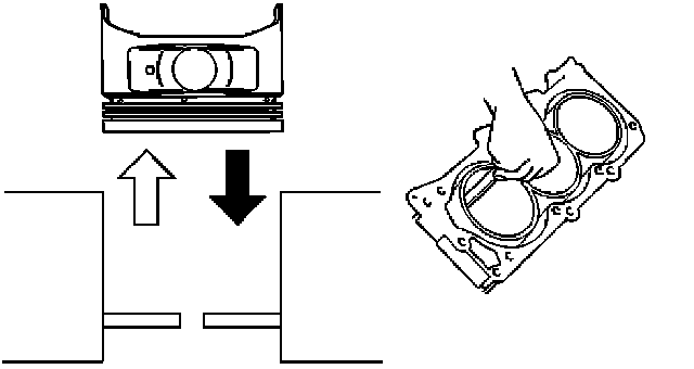 ^ Push the ring by the piston, at a right angle to the wall, into the point at which the cylinder bore diameter is the smallest.